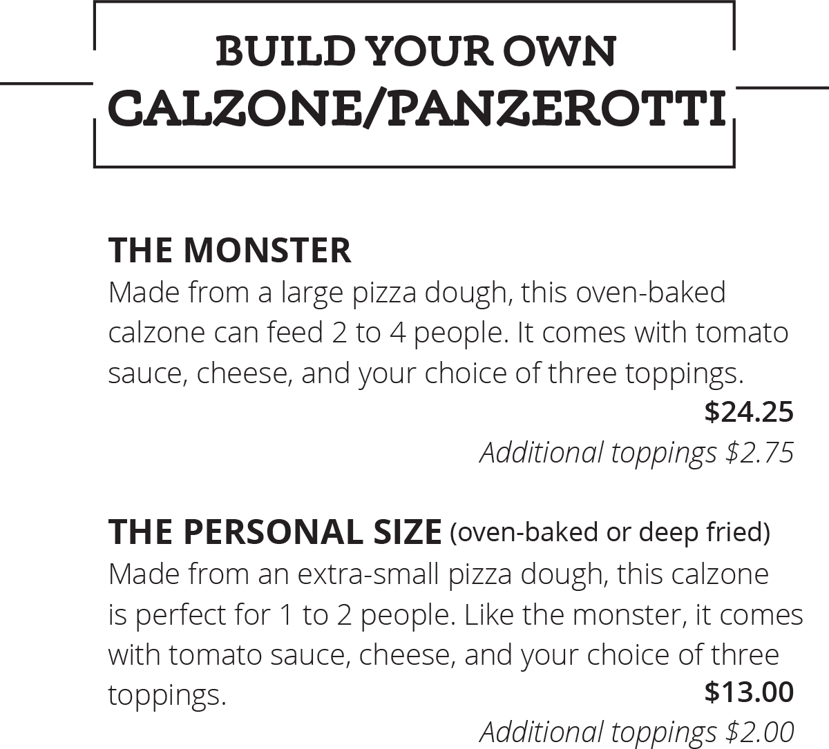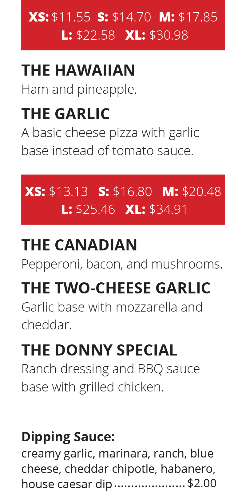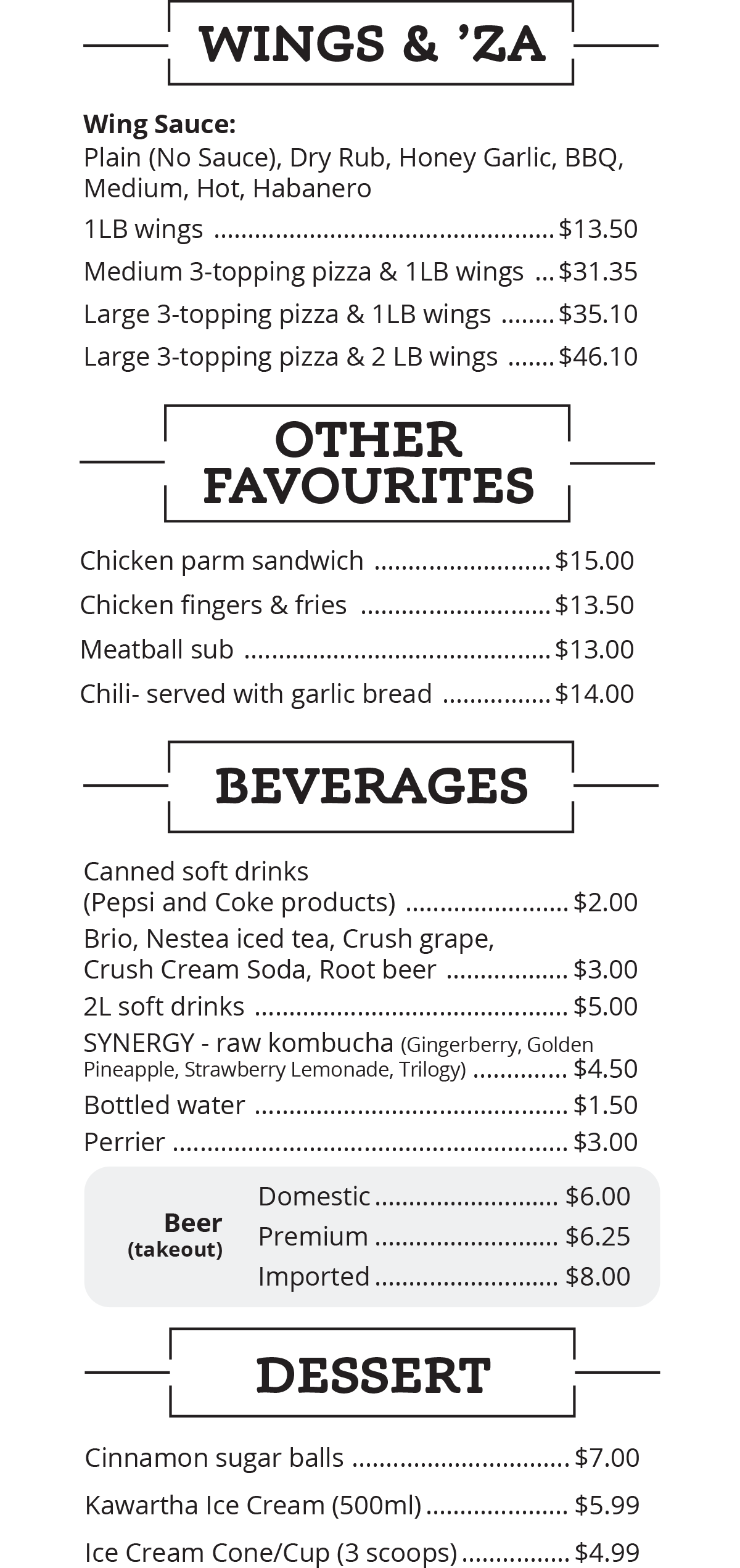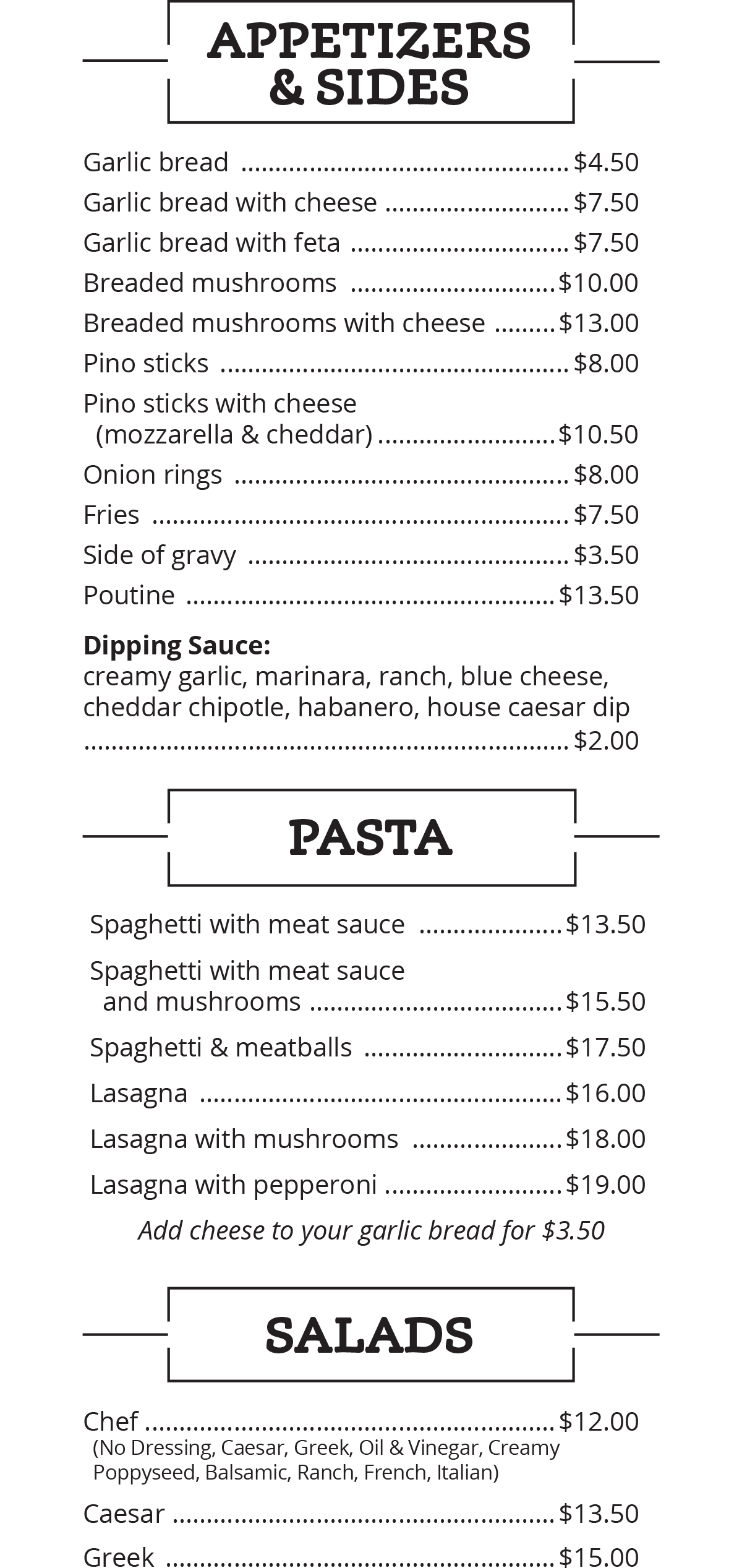 Dine-In Menu